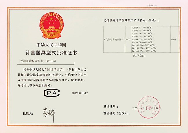 氣體超聲波流量計(jì)型式批準(zhǔn)證書
