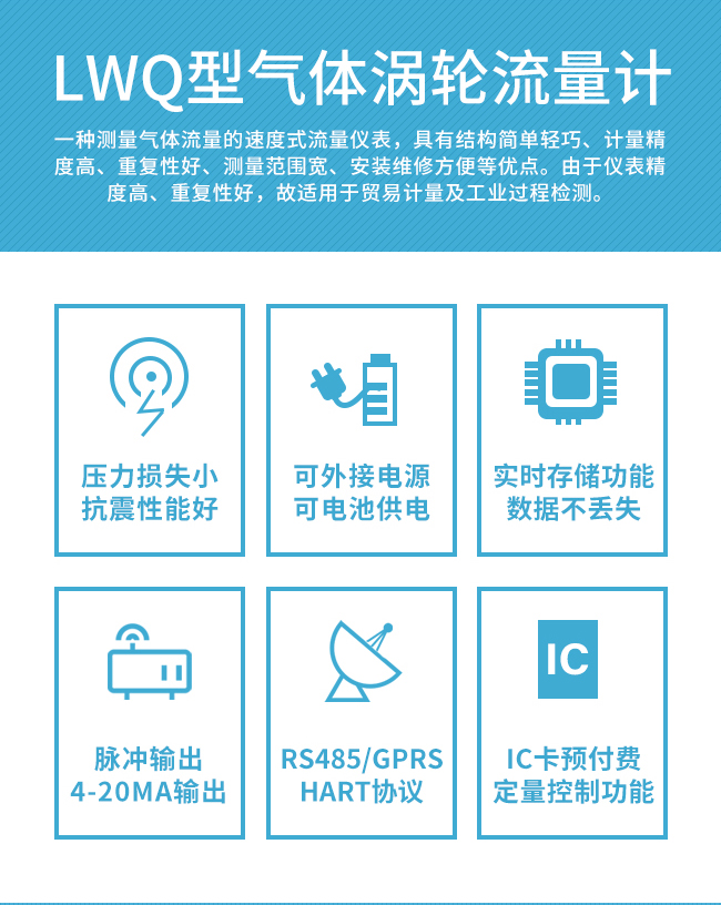 LWQ溫壓補償氣體渦輪流量計集溫度、壓力、流量傳感器于一體,在線跟蹤檢測介質(zhì)的溫度和壓力并進(jìn)行自動補償、壓縮因子修正運算,因此具有優(yōu)良的低壓和高壓計量性能,特別適用于各種單相氣體的測量。